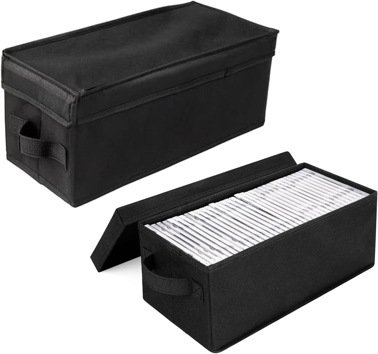 2 Pack Effective Disc Keeper Foldable Design Saves Space While Securing Your Collection Features : Efficient Space Management : This home disc storage planner is designed for music lovers , helping arrange and store up to 60 thin discs The collapsing design allows compact storage when unused , maximizing space efficiency for a neat area Portable Carry Design : Featuring comfortable handles , this disc keeper enables easy transport of your media collection Suitable for home , workplace or travel use , keeping your favorite recordings within reach wherever you go Sturdy Fabric Build : Constructed from strong not woven fabric , this disc case provides consistent coverage The included lid prevents buildup , helping maintain your discs in excellent condition over time Two Piece Organization : Includes two storage units to meet different arrangement needs Each container has ample room for various disc classifications , from popular tracks to film soundtracks , allowing quick and access Modern Aesthetic : With sleek lines and elegant colors , this disc holder blends with any decor Its appearance functions as both practical storage and stylish accent while keeping your collection neatly organized Specifications : Product name : disc storage box substance : not-woven fabric Dimensions : 14.2x5.5x6.3in Package Includes : Disc storage boxx2 Note : Before using the accessory , please check if it is compatible Pay attention to the storage methods
