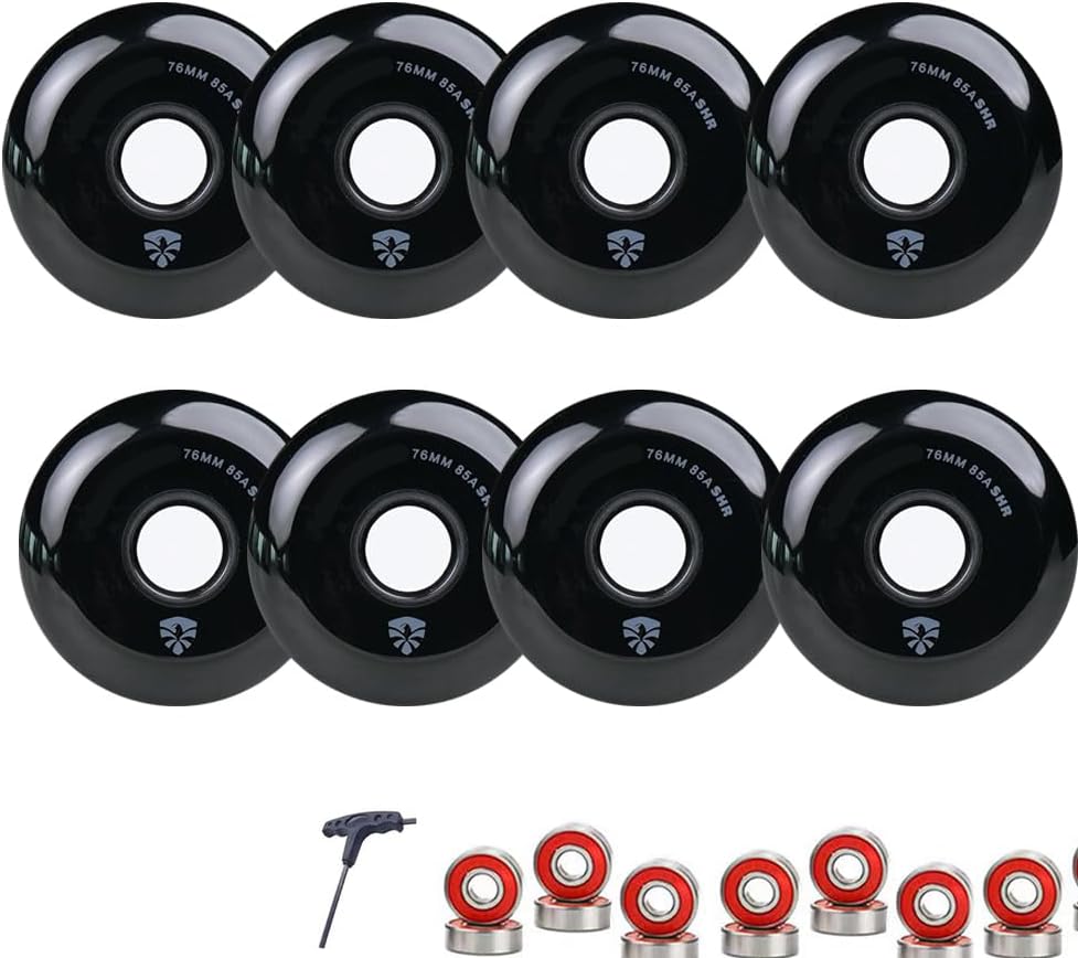 Available in 76mm and 80mm sizes, these wheels are designed for casual skating, fitness riding, commuting and skate park sessions. The 85A hardness delivers reliable speed and grip on most surfaces, while the high-quality PU material ensures a smooth, quiet and durable ride. This 8-wheel set allows you to fully replace both skates at once, improving stability, balance and overall performance.A must-have accessory for all inline skate users. Specifications Quantity: 8 wheels Sizes: 76mm / 80mm Hardness: 85A Material: High-density PU (Polyurethane) Application: Inline skates for kids & adults