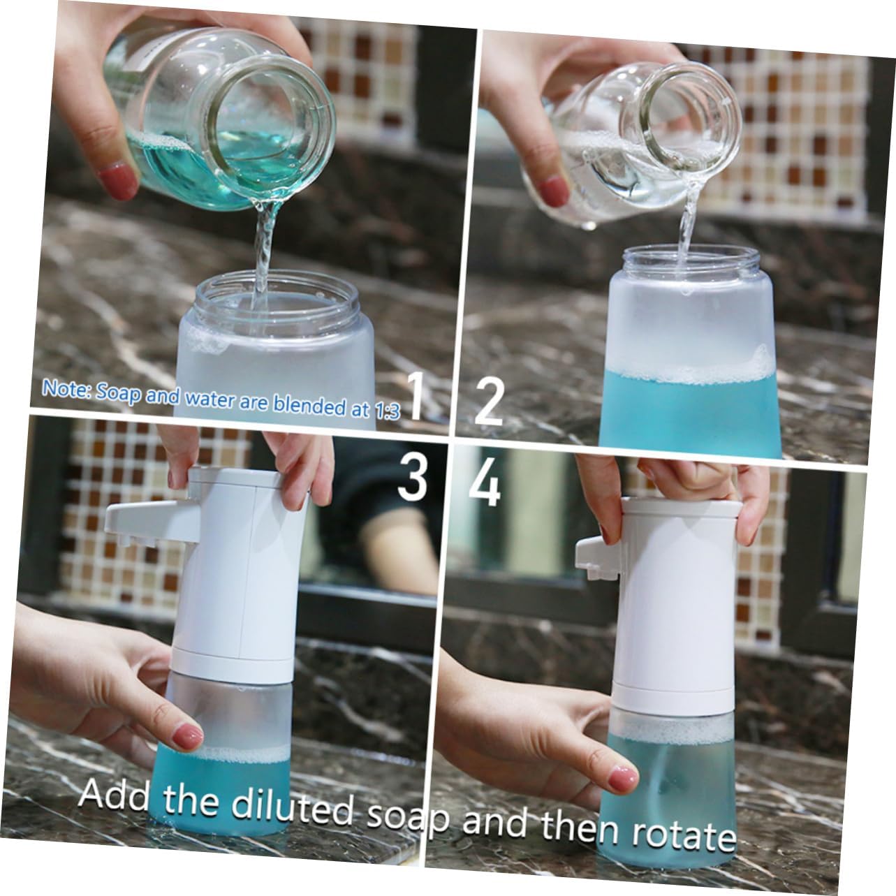 Package Include 1 x Soap Dispenser Characteristics - Capacity: 350ml Auto-Induction Sensor Soap Dispenser. - Size: About 11.5 x 7.9 x 19.3cm. - Color: White. - Material: Plastic. - Remove the soap tank from the bottom to refill Touchless Soap Dispenser. - Large capacity, very for home use Soap Dispenser. - Made of plastic material, more and solid. Powered by 4 AAA batteries(not included) Automatic Soap Dispenser. - Touchless and easy to set up. Put your hand under the sensor to let the dispenser start to work Soap Pump. - You don't have to worry about the damage by liquid seeping into the dispenser through the button.Goods InformationAuto-Induction Sensor Soap Dispenser Suitable for bathroom, kitchen, toilet, office, hotel, etc.Automatic Soap Dispenser The touchless soap dispenser is automatic, don't have to touch the pump to use soap.Soap Dispenser Electronic sensors promote as you are not at risk of that might be on the surface of the dispenser