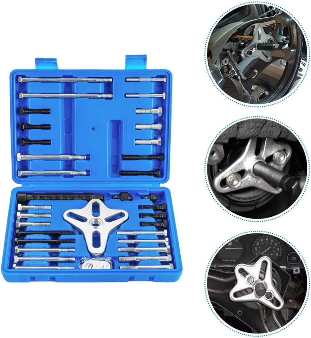 Package List 1 x set of puller tools Features -Material:Carbon Steel pulley removal - durability: made from materials, ensuring the durability and performance flywheel puller -Size:27.50X20.00X4.50cm/10.81X7.86X1.77in harmonic balancer installer -Color:Assorted Color pulley puller -Versatile design: compatible with a wide range of models, providing a for various automotive tasks crankshaft pulley removal -Efficient use: the puller makes the removal and installation of steering wheels quick and efficient pulley removal -Necessary : an indispensable for maintenance and repair, ideal for both professionals and enthusiasts -Protective removal: designed to prevent damage to the and surrounding components during disassembly wheel hub pullerGoods Description With this kit, you can perform maintenance tasks quickly and accurately, keeping your vehicle in condition.pulley removal The puller and disassembly set is an essential kit for anyone who needs to perform maintenance on their vehicle steering system. lock puller This comprehensive set includes a variety of pullers and removers, making it versatile enough to handle different of steering wheels, crankshaft pulleys, and harmonic balancer