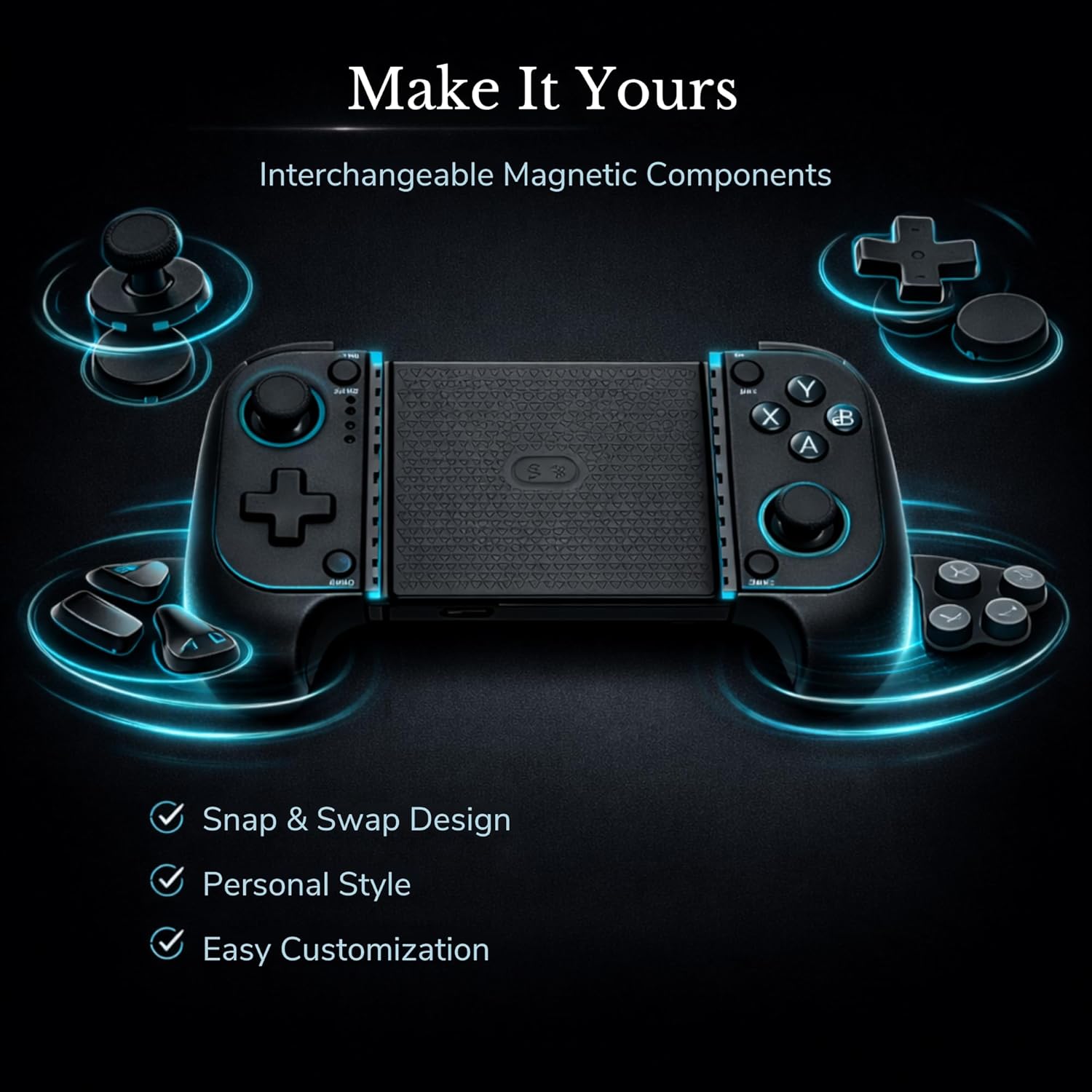 • Multi-Mode Compatibility: Supports Android (HID plug-and-play), Nintendo Switch (controller mode), and Cloud Gaming (Xbox controller ID for iPhone/MFi games). Just connect via Bluetooth and play—no setup required in supported games.