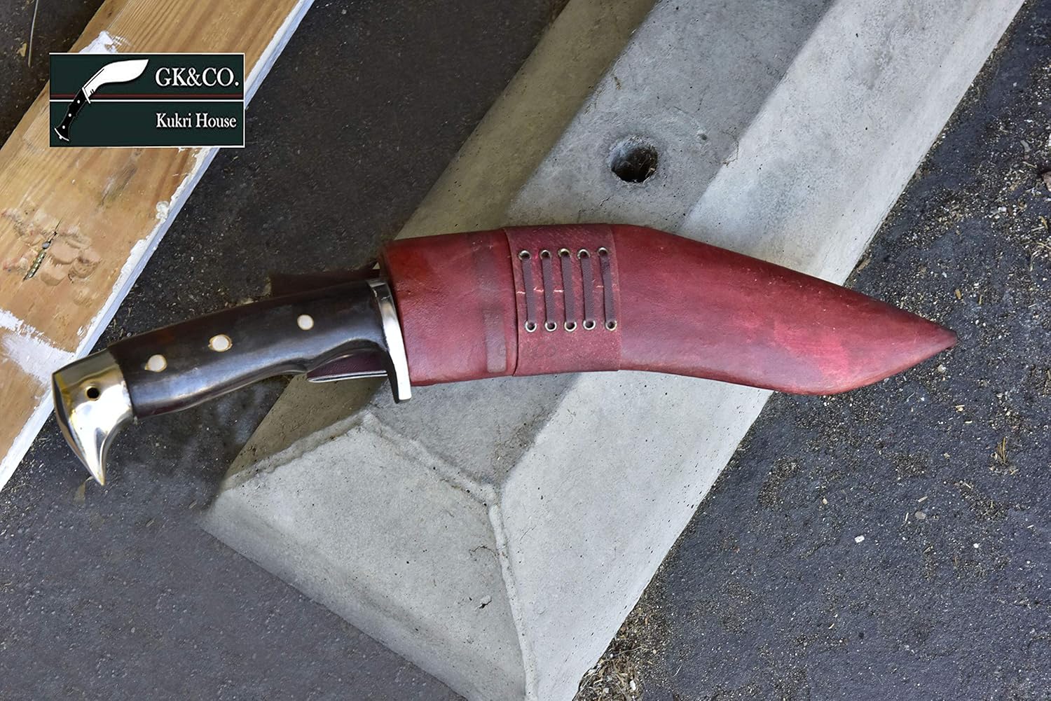 About the- 10" Blade American Eagle Kukri This is one of the beautiful kukri models. The name; American Eagle derives from the Eagle which is national Symbol of United States, the handle shape is eagle and its famous within US Knife collectors. The blade has beautifully hand skilled craftsman in eastern Nepal. The handle is made of Rosewood with white metal tip/ pommel while scabbard is made of cotton covered with yak hide. The Blade is best for outdoors as well as kitchen for cutting vegetables, meat as well as cutting wood and clearing bushes. This is one of beautiful souvenir or gift items as well. Two Accessory Knives: The Karda; which has a sharp edge is used of skinning animal hairs & other one is called Chakmak (blunt) is used for sharpening blade.