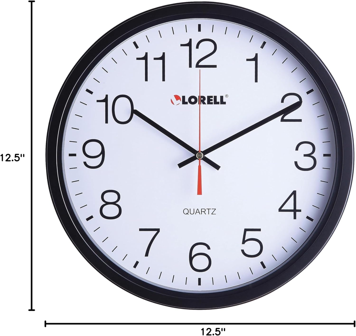 12-1/2" wall clock features a contemporary, slim line design with a clear glass cover to add modern style to any room. Easy-to-read, 12-hour dial face allows easy viewing from anywhere in the room. Silent sweep movement eliminates any ticking sound for distraction-free use in quiet environments. Battery-operated clock requires one AA battery (sold separately). Clock is perfect for displaying in conference rooms, classrooms, lobbies, waiting areas and more.