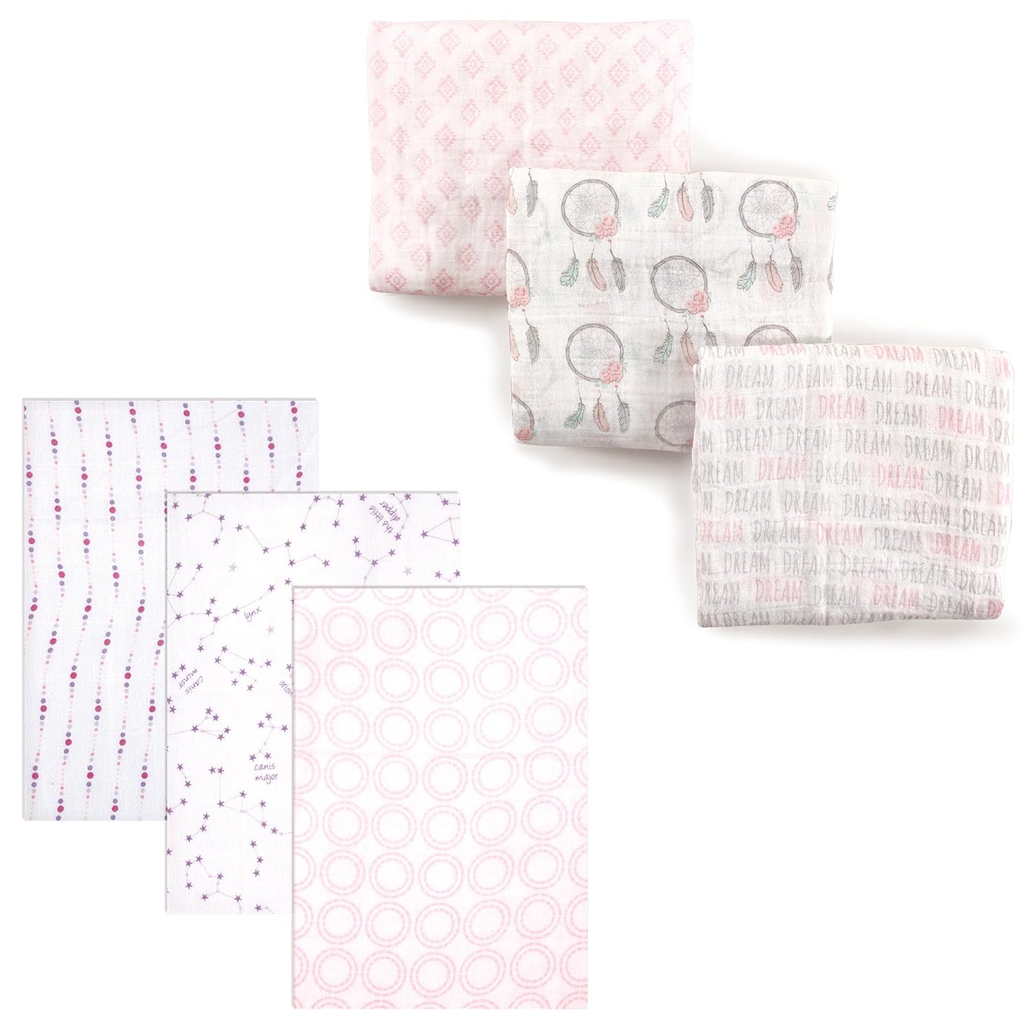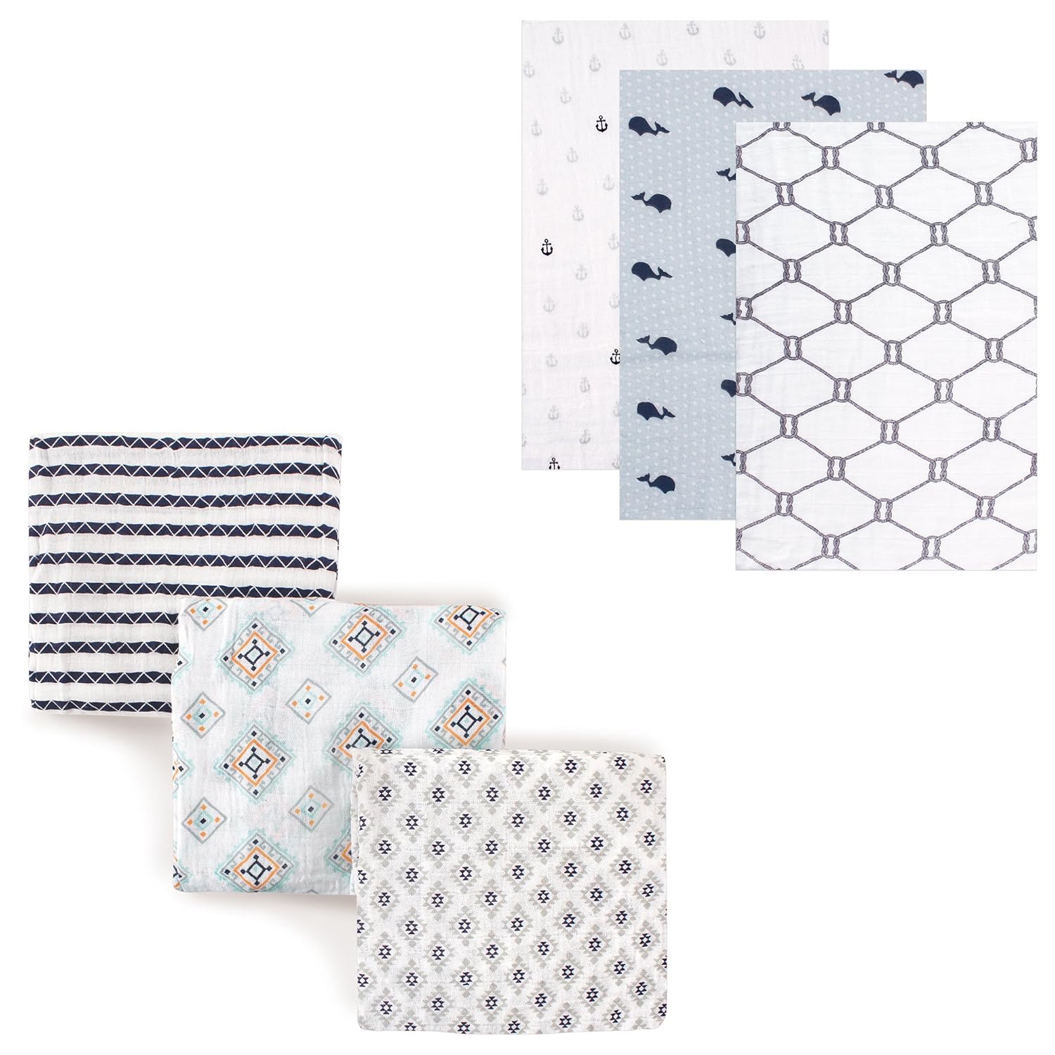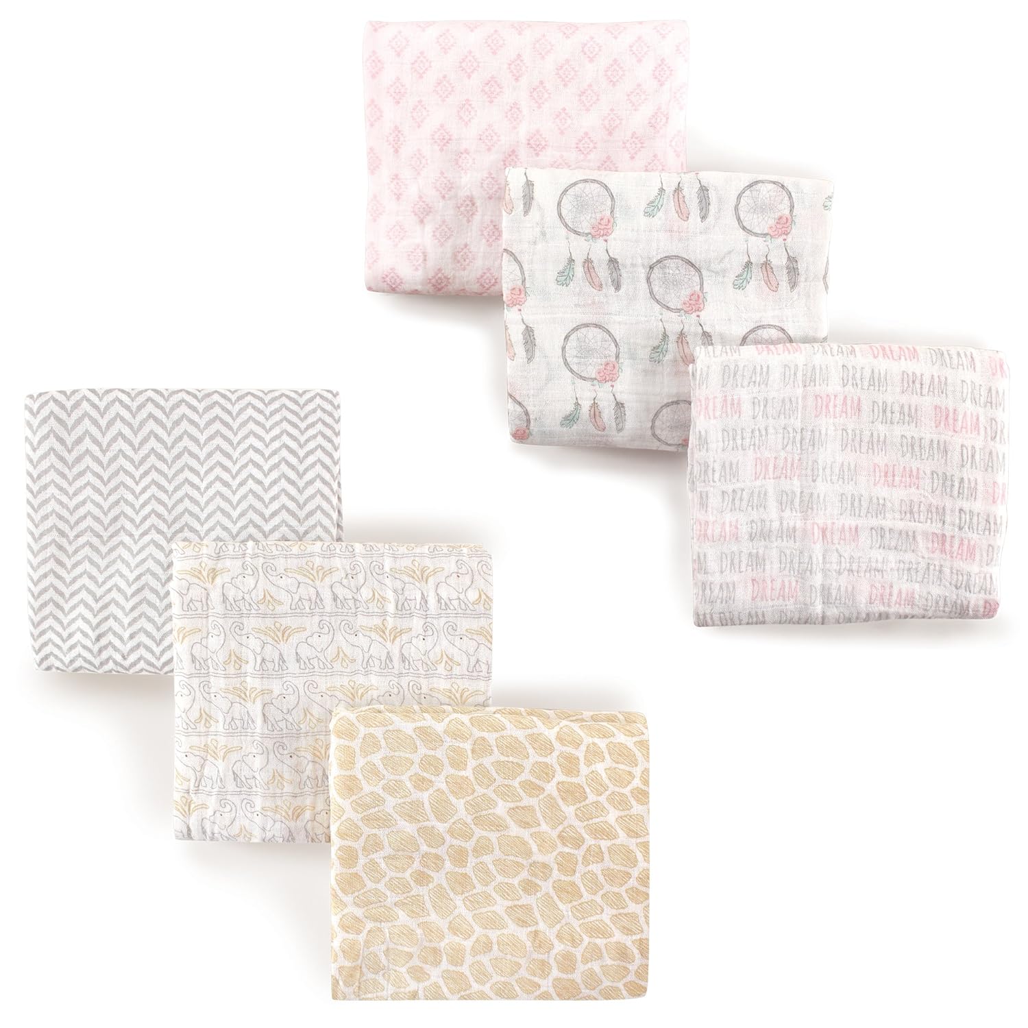 Hudson Baby bundles save families money by offering lower prices on everyday baby essentials when buying in bulk purchases. Hudson Baby muslin blankets are made of the highest quality muslin fabric so they are super soft, breathable and versatile baby blankets. We recommend moms use our muslin blankets for swaddling, nursing cover, stroller cover, tummy time and more. Our 6-pack muslin blanket bundle offer moms more unique prints and patterns for a special value price.