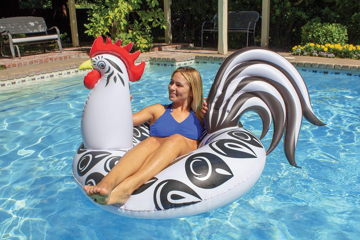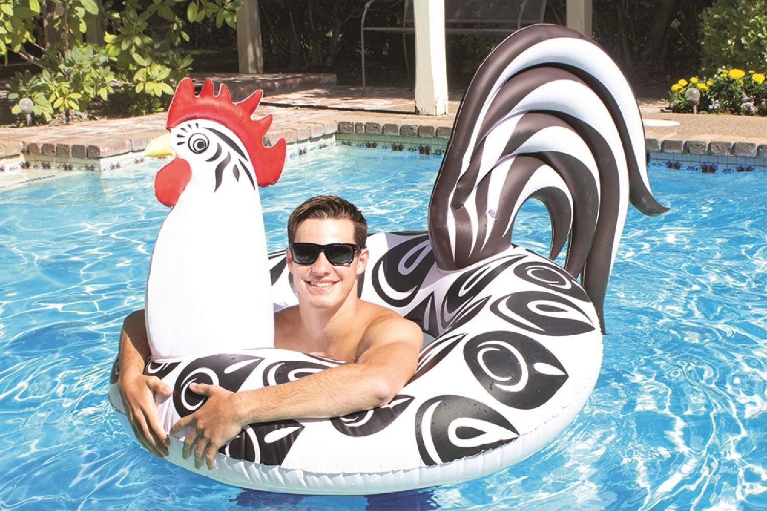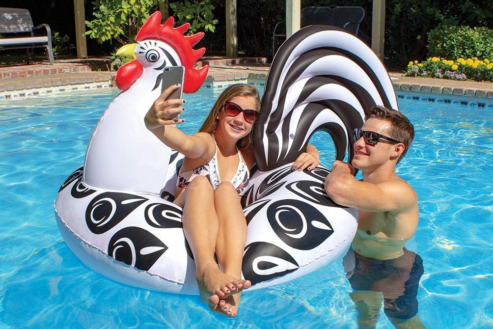 • COCKADOODLE-DOO: Such a stand out on the water with its striking black and white colors, the inflatable Poolmaster Rooster Swimming Pool Party Float will rule the roost at your next pool party or beach, lake or river event!