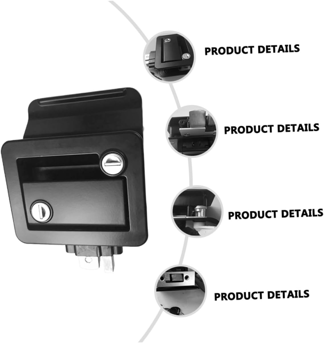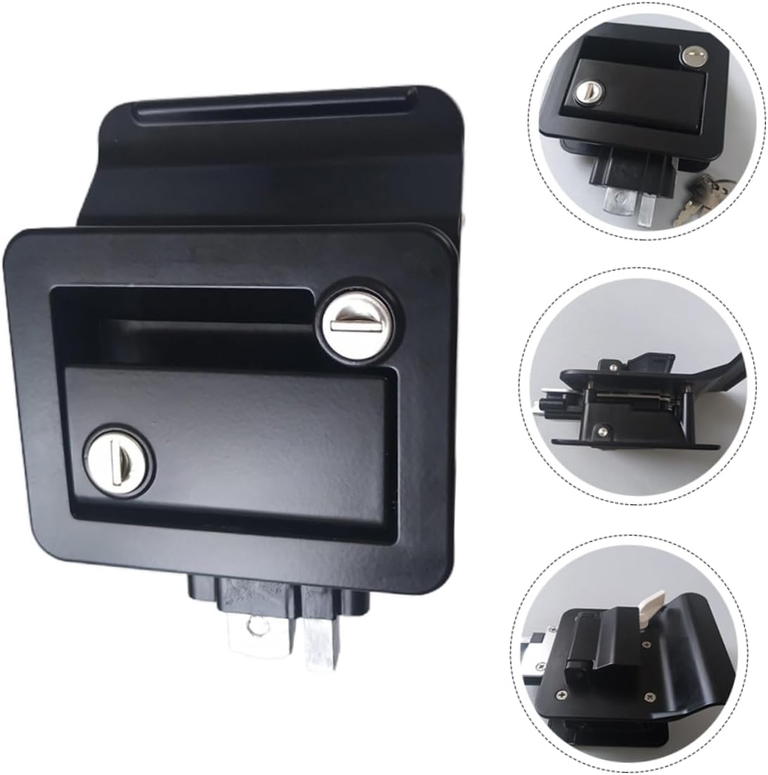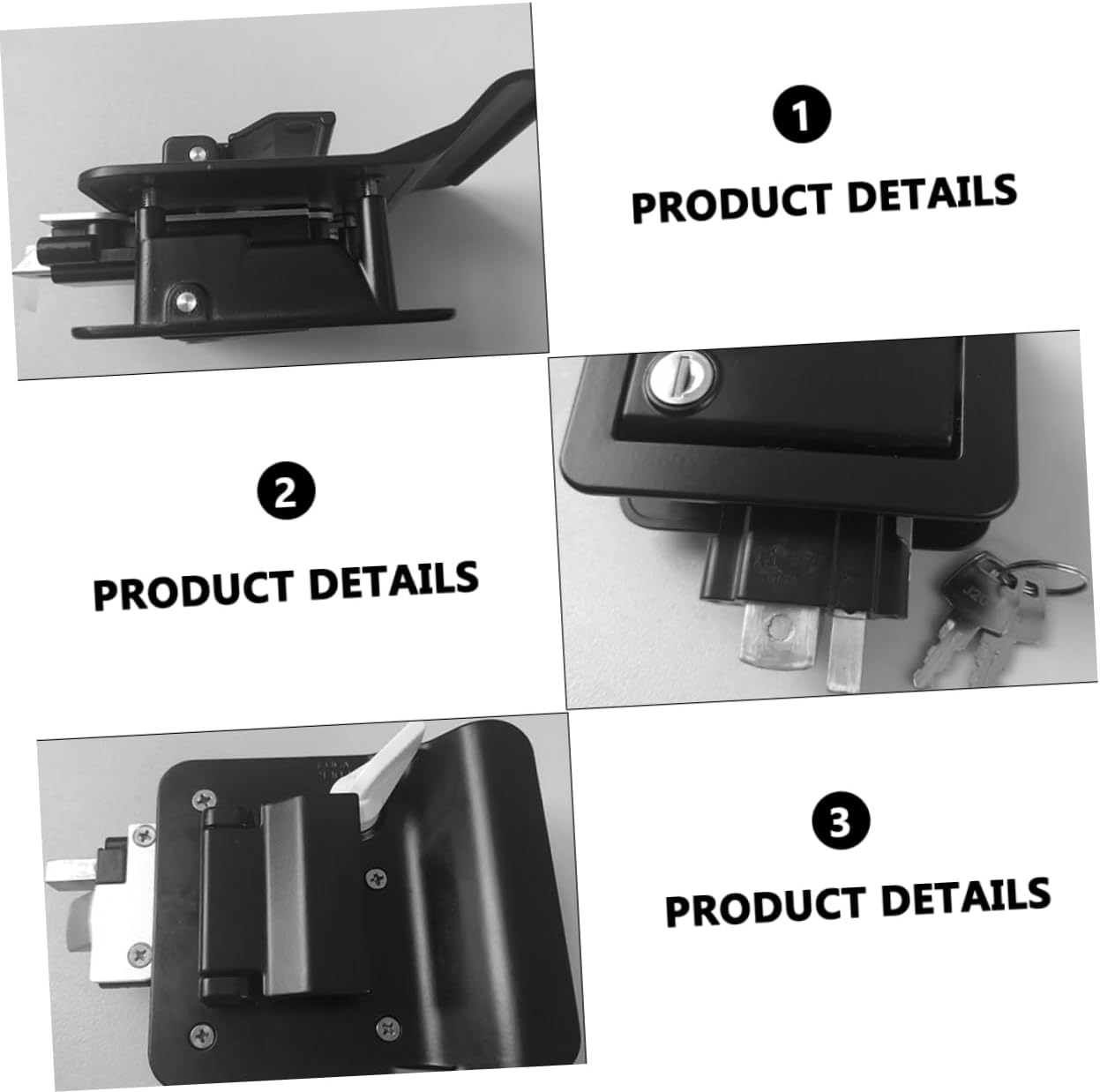Package List 1 lock 1 x set of installation accessories Characteristics - Color: Black trailer door . - Size: About 15.4x11x6cm/ 6.05x4.32x2.36 inch camper door . -Product Info:Hammer door safety lock - Material: zinc alloy trailer entry door lock. - and smooth , better protecting your goods and commercial material from thefts rv trailer door lock. - Selected quality zinc alloy material, corrosion-resisting, providing years of dependability and durability for long-term outdoor use travel trailer door lock. - Thickened solid base for stable installation rv door . - It’s much safer than normal . Inside and outside double open trailer door lock. - It can be widely applied in travel trailers, campers, trucks, horse trailers, cargo , etc, practical for protecting the contents in car rv travel trailer entrance door lock.Goods Descriptioncamper door lock It’s much safer than normal.trailer entry door lock Inside and outside double open.trailer door lock Do you want to buy a set of but Zinc alloy RV door fittings? Our product can meet your requirement.travel trailer door lock It can be widely applied in travel trailers, campers, trucks, horse trailers, cargo , etc, practical for protecting the contents in car