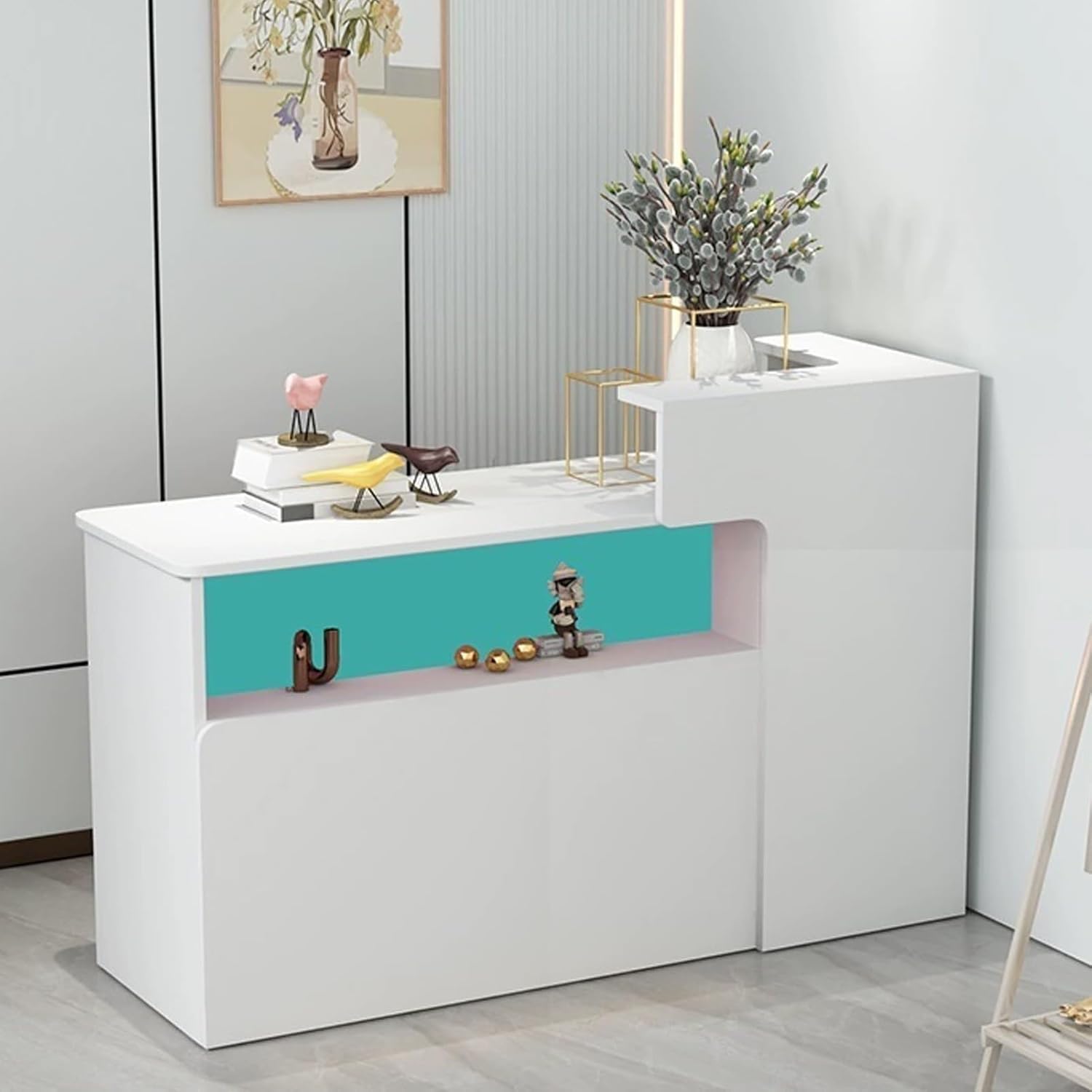 HOLGVE Ample Storage Space The spacious shelf above the desktop improves the neatness of your workplace and makes your office supplies easy to access. The desktop is wide enough to hold your computer or cute decorations.Ideal for transacting business or welcoming guests.Ideal for a lobby, salon, office or school.Product Name:Reception Desk/Front Counter Desk/Retail Counter/ With Led LightProduct Material:High-Quality Thickened High-Density BoardMaterial: Engineered Wood, MDFStyle:Modern And SimpleIs Assembly Required:YesPackage Contents:Reception Desk X1, Product Size: (LxWxH)80x50x100cm/31.4"x19.6"x39.3", 100x50x100cm/39.3"x19.6"x39.3", 120x50x100cm/47.2"x19.6"x39.3", 1. Note: Due to the particularity of the furniture, there will be slight errors in the finished product, which is normal. The data is for reference only and must be based on the actual product. We hope for your understanding!2. While we display colors as accurately as possible, due to differences in computer monitors, colors may vary.