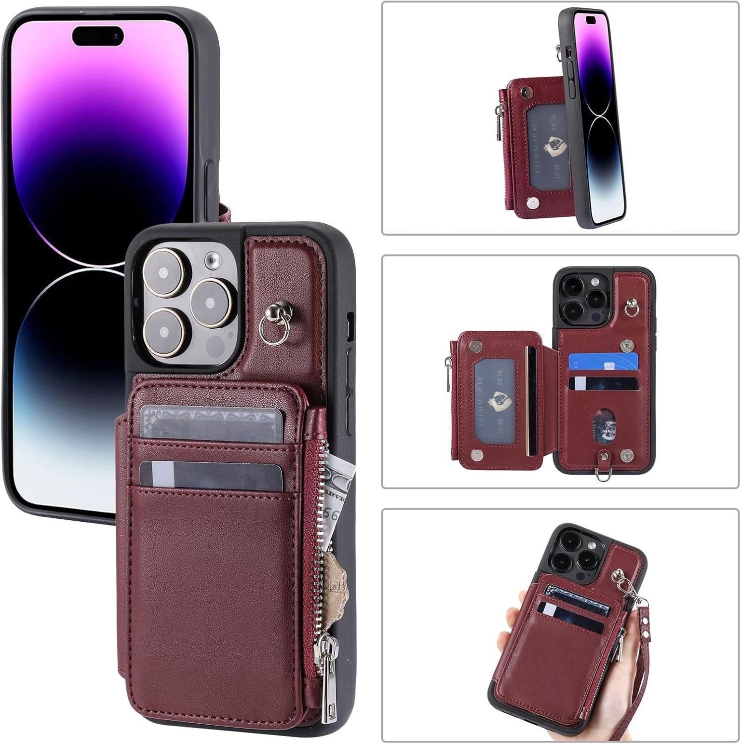 Product Description: Product material: PU and TPU- RFID blocking technology protects the security of your card information- Soft PU Leather material, better protect your phone from drops, scratches, bumps, shocks and other daily damages- Precise cut-outs, Easy access to all the ports, controls, buttons and camera- Multiple card slots meet your various daily travel needs, and dual magnetic buckles ensure safety- Excellent grip and exquisite appearance ensure that your phone looks and feels equally good- Edges rise above the screen and the camera lens for scratch-resistant protectionPackage Include : 1 x Phone Case