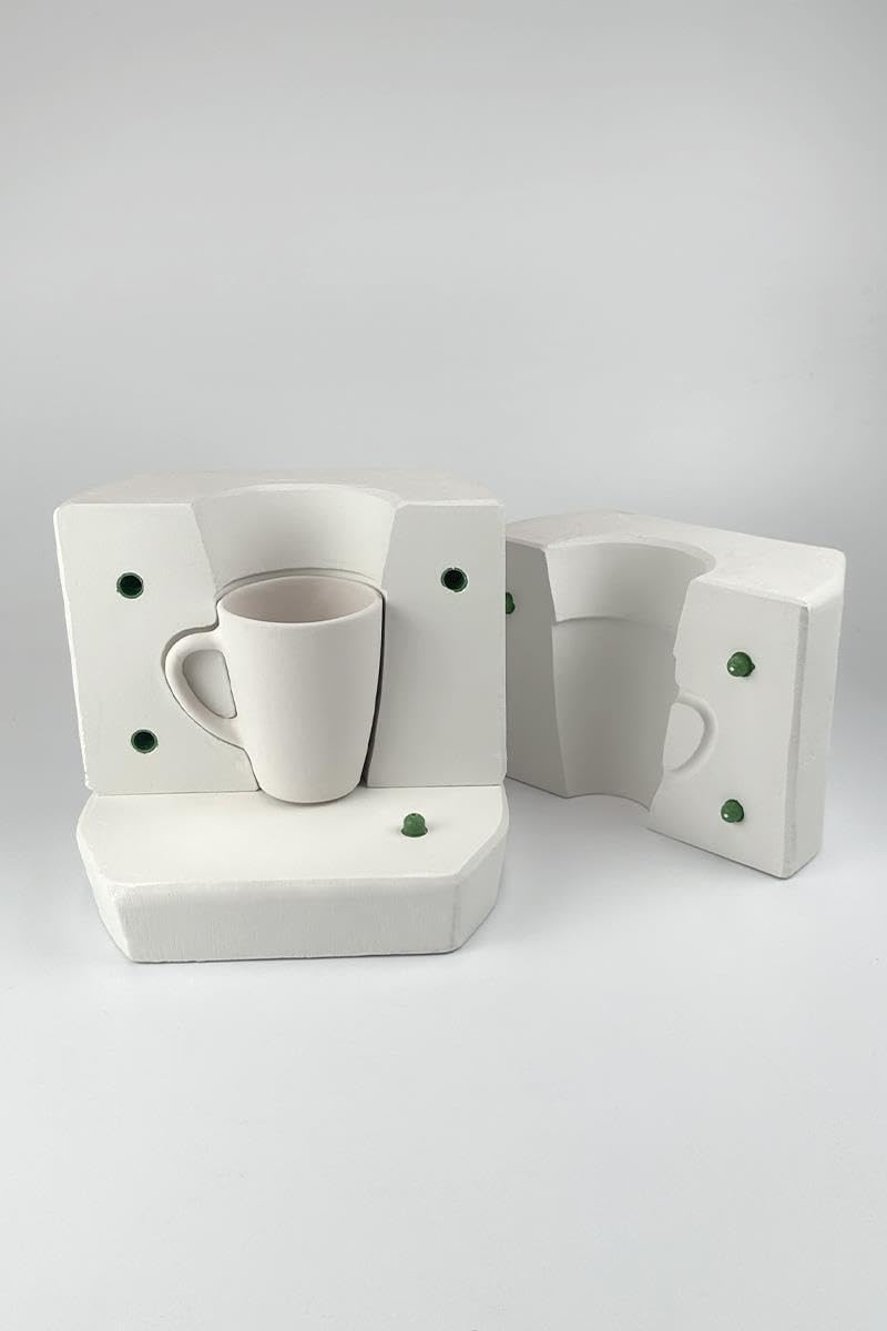Mold Size Width: 17 cm Height: 20 cm Height:18cm Weight: 5.3 kg (May vary by ± 10% depending on humidity.) Output Product Size Height: 9.5cm Mouth Diameter: 7 cm Base Diameter: 5 cm Volume: 200ml It consists of 3 parts. Production is made by casting method. Product information: The shrinkage rates of the casting slip to be poured in may vary depending on whether it is ceramic or porcelain. It is suitable for casting ceramic or porcelain clay. If the edges of the mold are broken or damaged, it does not prevent getting a smooth product from it. The important part is that the inside of the mold is smooth. The plaster mold should be wiped with a damp sponge before casting, and care should be taken to avoid dust and particles. The casting slip should be mixed thoroughly with the help of an electric mixer if possible, or a wooden spoon. The casting slip to be put in should be prepared a day before in advance and sodium silicate (glass water) should be used during the preparation stage. The slip should be poured into the mold slowly and filled up to the rim of the mold. Depending on the weather conditions, 2-4 castings can be made per day. The lifetime of the product is about 100 castings. It may vary depending on usage.