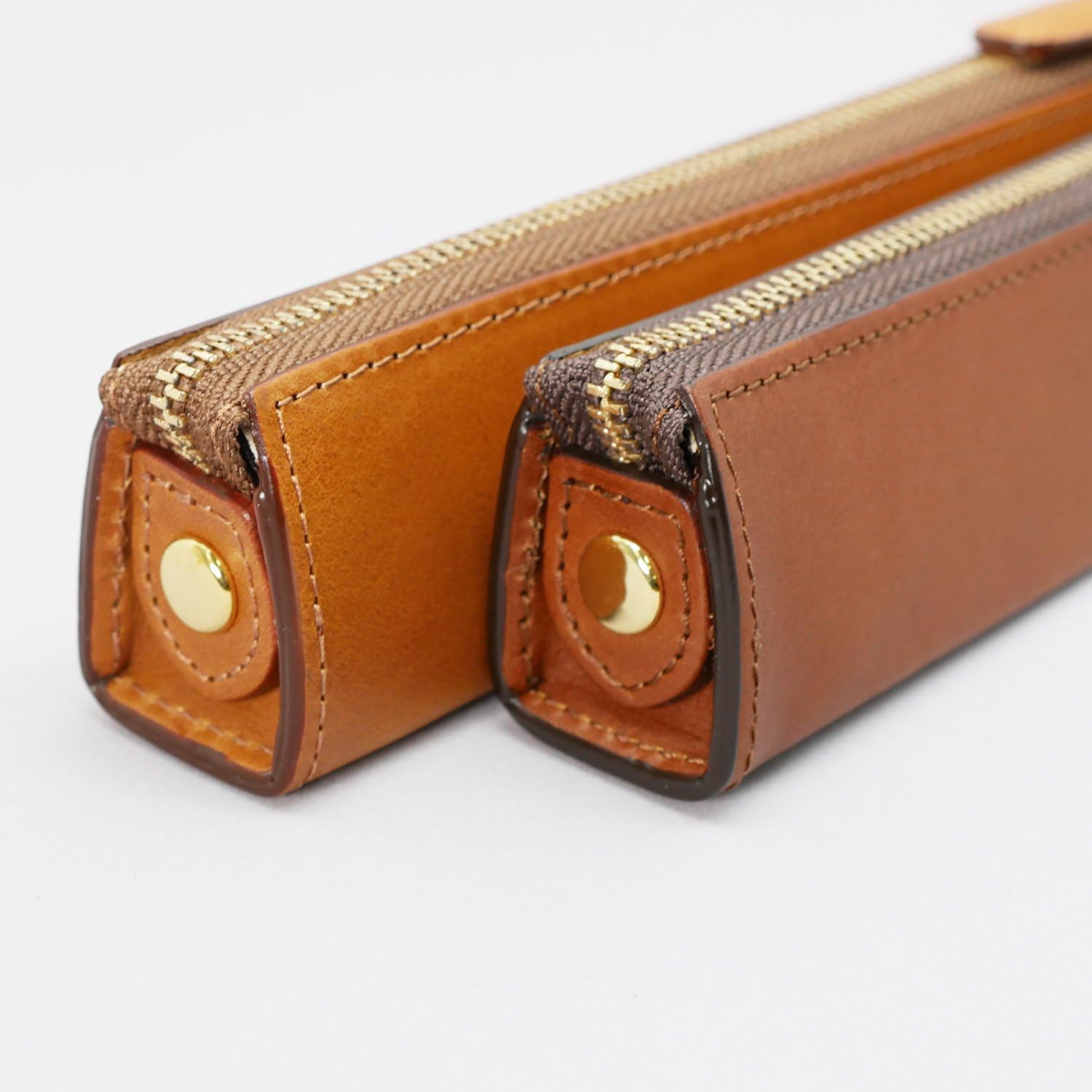 A long triangular gusset pen case made of genuine Italian leather. The long size of the inner diameter is 7.7 inches (195 mm) so you can store the pencils with the cap as is. With a diameter of 0.4 inch (10 mm), it can hold 6 to 7 pens. This is the perfect pen case for those who often use pencils. Stitches are arranged in the same color for a calm and mature look. The golden zipper pulls are attached to the leather for easy opening and closing. Features a chic color and muted tone. No pigments are used, so the expression will change every step of the piece. Can be used for a wide range of occasions, from private to business situations. As you use it, it gradually becomes glossy and will become more gentle on your hands. If you have shallow scratches on the leather, it will sink over time and become inconspicuous.