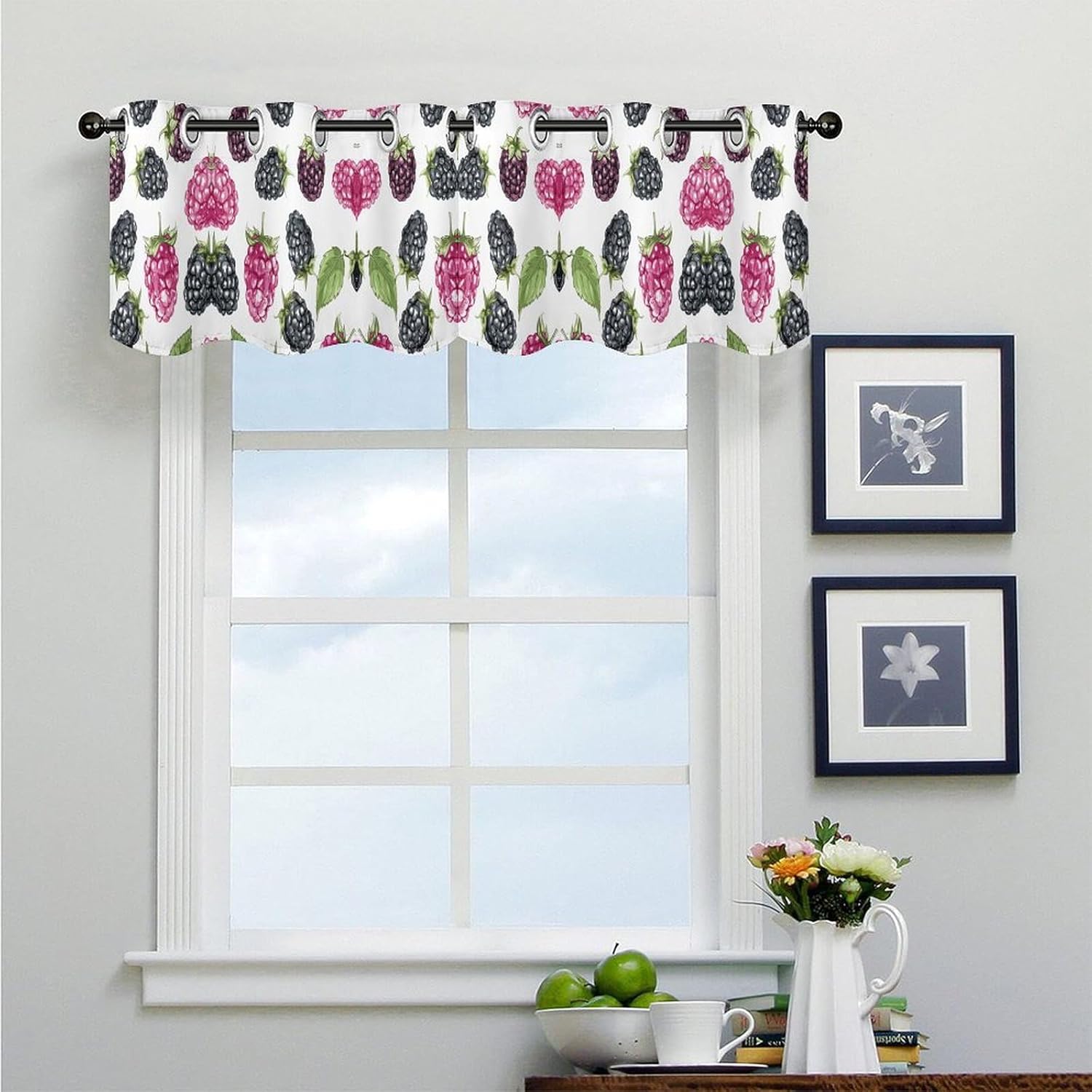 Valances For Windows Provides You With Just The Right Level Of Privacy Protection. Blackberry Fruit Pattern printed Valance Curtains Is Designed Specifically For Small Windows, Basements, And Cafes, Turning Your Rooms And Spaces Into Stylish And Atmospheric. Basement Curtains Can Be Used To Decorate Your Windows And Rooms, Pocket Window Curtain Is Perfect For Small Windows In Living Rooms, Study Rooms, Bathrooms, Basements