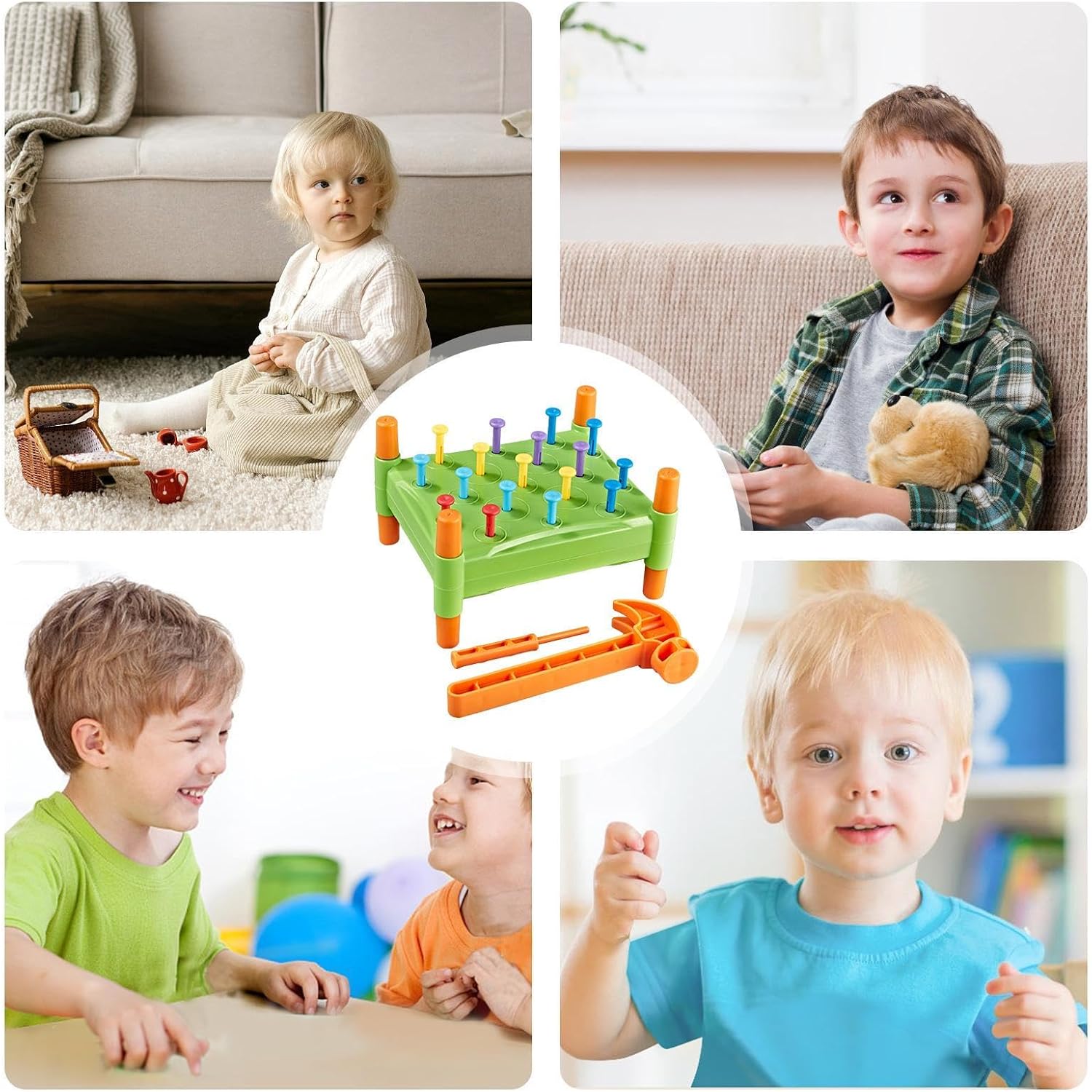 Looking for a toy that stimulates your child's brain? Our Play Brainy Peg toy set provides an interactive way for kids to develop logical thinking and spatial awareness. The double-sided loop allows for continuous play, while improving attention and concentration. Made with durable materials, this toy is not easy to deform or damage and comes with convenient storage. Product name: nail knocking toy Product material: ABS Package size: 18.8x8.2x18.8cm Product weight: about 350g Packing Method: Color Friendly Tips: 1. Due to the color temperature of the screen, camera, ambient light and photographic skills, etc., there may be a slight color difference in the images of some products, and the color is subject to the actual product! 2. Due to different manual measurements, please allow slight dimension difference. List: Blow table x1 x1 Strike x1 Colored Nails x34 Storage x1