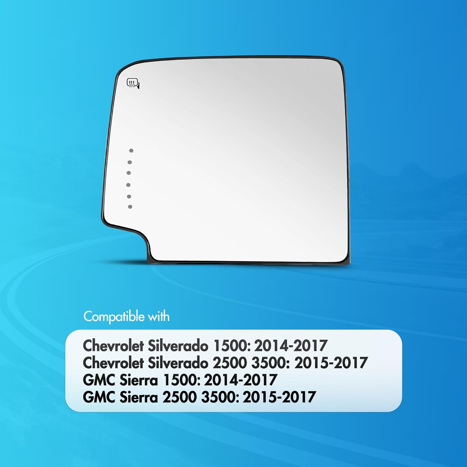 | Compatible with Vehicle Type | 2014 2015 2016 2017 Chevrolet Silverado 1500, 2014 2015 2016 2017 GMC Sierra 1500, 2015 2016 2017 Chevy Silverado 2500 3500, 2015 2016 2017 GMC Sierra 2500 3500, Car |