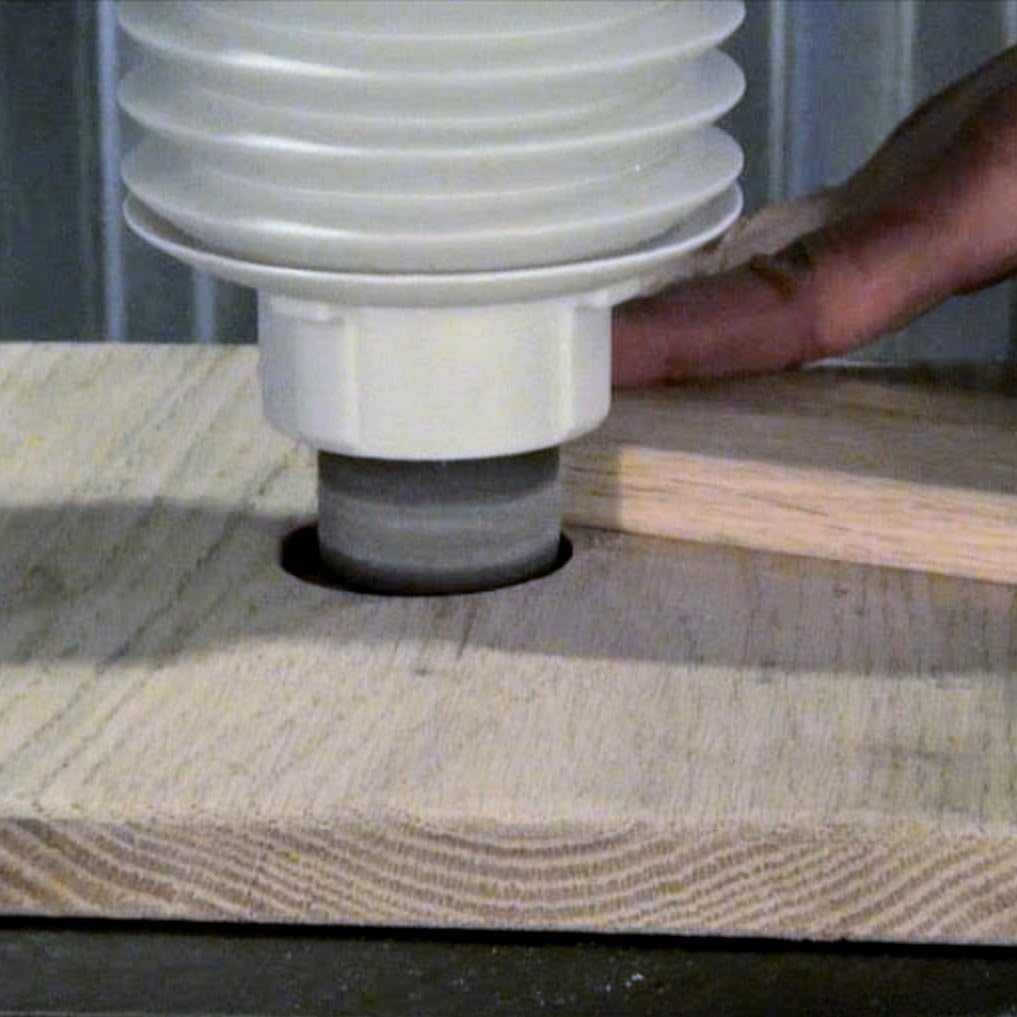 There are two versions of this product. Please look at both DRILLNADO and DRILLNADO XL before purchasing! Finally… dust collection for the drill press!! Dust collection is a huge issue in the shop. Wood dust is a known carcinogen. Exposure to wood dust has been associated with dermatitis, asthma, chronic bronchitis, and cancer. In addition, excess wood debris creates a mess of a shop. Most stationary woodworking shop tools and many handheld power tools have built in dust collection, but not the drill press. Until now! Because DRILLNADO surrounds the drill chuck and drill bit, it collects nearly all of the drilling debris and dust. The fist part of the DRILLNADO housing attaches permanently to the drill press quill. Your shop vacuum or dust collector attaches to this housing. The expandable housing is removable and attaches to the top housing. Because it is expandable (and collapsible) and sustains the desired length on it owns, you can position the vacuum opening directly at the point of the drill bit right where the dust is collected. With the expandable housing removed, you can access the drill quill and change bits as needed. DRILLNADO works great with a common shop vacuum, wet / dry vacuum, or a large dust collection system. You can attach a 2.5” or 2.25” dust collection hose. Of course you can attach the DRILLNADO to a 4” dust collector using commonly available adapters / reducers. The top DRILLNADO housing and dust collection hose can stay permanently attached to the drill press when not in use. The removable and expandable housing allows you to place the vacuum opening directly above the tip of your bit and the source of dust. Use DRILLNADO with all 12" and smaller drill presses. Also use for all drill presses with keyless chucks. Works on drill press quills with
